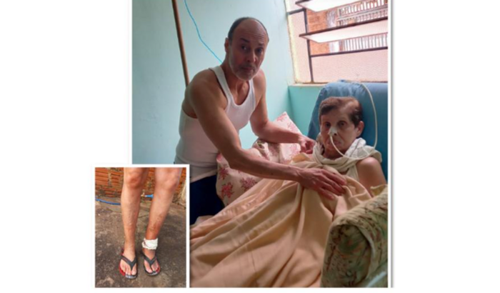 Esta é a dona Dolores e seu filho Rogério. Dona Dolores tem 85 anos em março de 2020, após sair do Banco Bradesco para receber seu benefício foi assaltada, e devido a este assalto teve um AVC e desde esse dia se encontra numa cama sem falar, sem andar e quase sem movimentos. Rogério seu filho, que é professor de Educação Física, a partir deste momento precisou abdicar-se de tudo o que fazia para cuidar da sua mãe, pois ela só tem ele e desde lá os 2 sobrevivem com apenas um salário mínimo, tendo que comprar fraldas, alimentação enteral (vide foto), remédios de uso continuado e tudo mais. Não bastasse todos os problemas, o Rogério tem Insuficiência Venosa nas pernas. A situação ficou tão crítica que apenas lavando a perna com uma bucha foi o suficiente para estourar uma das veias. Perdeu muito sangue e esse foi apenas uma das vezes, ao todo já foram 3. O médico do posto de saúde que atendeu Rogério quando viu as fotos do sangue no chão ficou assustado e encaminhou ele para um cirurgião vascular. O problema é que o SUS é muito demorado e ele não tem tempo para esperar, pois pode sofrer até uma amputação e precisa dessa cirurgia com urgência pois, necessita estar bem das pernas para poder cuidar da mãe. Afinal de contas, ele tem que erguê-la para dar banho, levá-la na fisioterapeuta e tudo que ela precisa fazer. Está muito difícil, as dores são fortes, mas Rogério tem seus afazeres domésticos dia e noite, o que exige muito cuidado para não machucar a perna e romper uma veia novamente. O nosso pedido de ajuda é para que o Rogério possa fazer essa cirurgia no particular, possa ter todo o suporte de médico: anestesista, instrumentador, remédios, tudo o que precisa e também possa ter condições de pagar uma cuidadora (8 diárias), para olhar Dona Dolores e também cuidar de Rogério, para que ele possa se recuperar. Dona Dolores também necessita um colchão pneumático, máquina de lavar roupas e cama hospitalar. Sabemos que existem muitas pessoas necessitadas nesse Brasil. Esse caso talvez para muitos que estiverem lendo vai ser apenas mais um, mas se você puder ajudar, com certeza vai estar ajudando muito. Que Deus, na sua infinita misericórdia venha recompensar e abençoar a todos em nome de Jesus. Amém.
