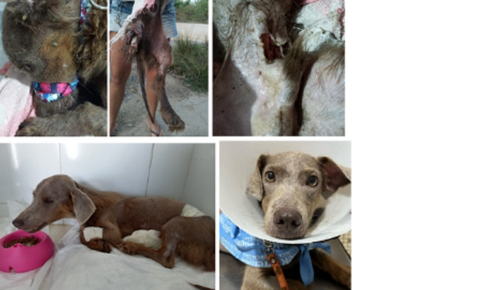 Oii gente, sou o Vitorino. Fui resgatado pela tia Sônia. Minha situação estava precária. Eu tinha miíase nas 4 patas, no céu da boca e na barriga. Meu exame de sangue estava uma tristeza. Com dedicação de todos (transfusão de sangue, medicamentos e vitaminas) conseguimos estabilizar meus exames para a tão esperada cirurgia de amputação. Simm, agora sou um tripezinho. Mas continuo lindo e me adaptei muito bem. Já estou até correndo para lá e pra cá.