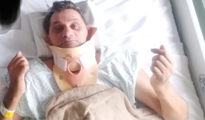 Em um jogo de futebol recebi uma entrada pelas as costas na qual os dois joelhos do jogador adversário acertou minhas costas fraturando meu pescoço e minha medula na qual fui submetido a uma cirurgia .