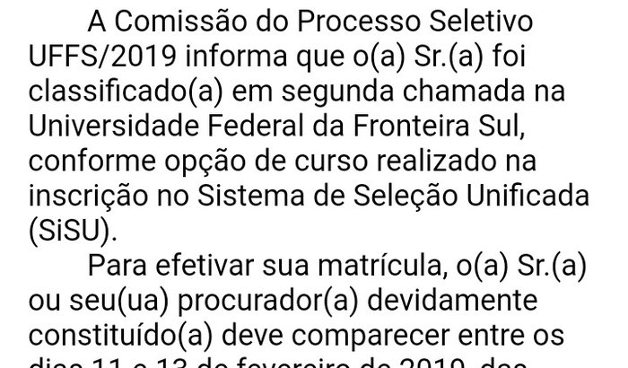 Ola amigos...nosso amigo Warley,mora em Vespasiano-MG,região metropolitana de belo horizonte, e o sonho dele era cursar Ciencias Biologicas,E através do SISU,ele foi selecionado para a UFFS,que fica em Cerro Largo-Largo-RS...e ele não tem condições de custear a ida dele ate a universidade, pedimos q nos ajude para que o Warley possa comprar a passagem e alugar um quarto de alojamento/republica,pois a faculdade tem o auxilio moradia,porém precisa matricular primeiro,E O PRAZO PRA MATRICULA É ATÉ DIA 13/02/19.....ajude o Warley a realizar o sonho dele de cursar Biologia....pois a familia é humilde e não tem condições de ajudar ele no momento,a mãe desempregada,e faz faxinas para sobreviver.... Por favor gente ajudem... Estamos correndo contra o tempo... O Warley merece,sempre foi uma pessoa excelente e uma bom amigo.... #SOSWARLEY